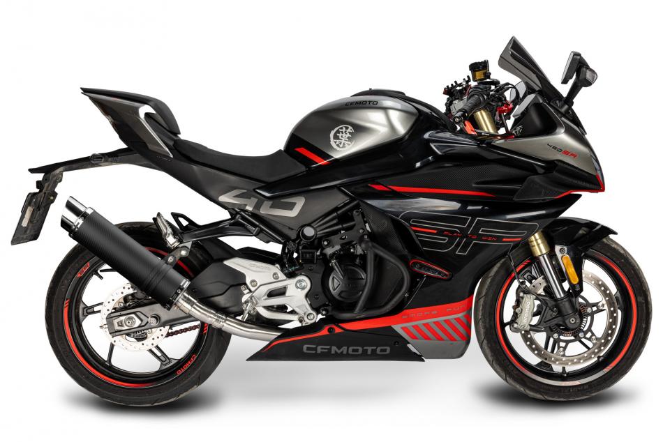• CFMOTO 450SR 2023-2025 Echappement KIT-Silencieux 350mm Rond Carbone