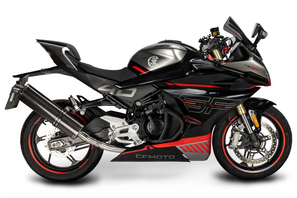 CFMOTO 450SR 2023-2025 Echappement Complet 2-1 Silencieux 450mm Ovale Carbone