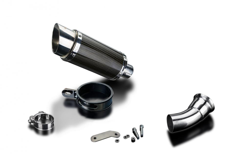 Kit d’échappement Slip-on pour Ducati Hyperstrada 821 & 939 avec Silencieux Rond En Fibre Carbone 200mm Mini Delkevic. Les silencieux Delkevic sont fabriqués à la main à partir de matériaux de la plus haute qualité pour améliorer les performances et l’esthétique de votre moto.