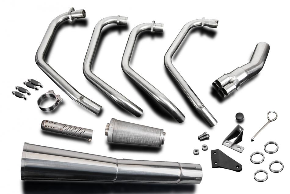 Doté de descentes en acier inoxydable et du silencieux Megaphone classique de Delkevic, ce système est fabriqué à la main avec des matériaux de première qualité et conçu pour s’adapter aux motos classiques d’antan. Grâce à un système de chicanes à cartouche à 3 étages, vous pouvez régler la sonorité de l’échappement selon vos envies.