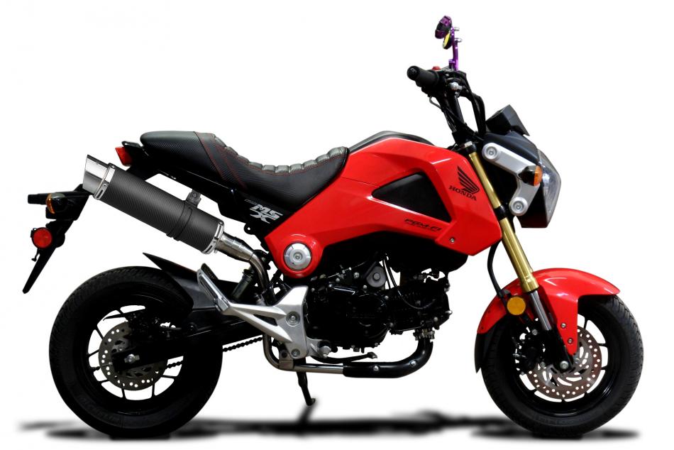Kit d’échappement Slip-on pour Honda MSX125 Grom (2013-2015) avec Silencieux Rond En Fibre Carbone 350mm DL10 Delkevic. Les silencieux Delkevic sont fabriqués à la main à partir de matériaux de la plus haute qualité pour améliorer les performances et l’esthétique de votre moto.
