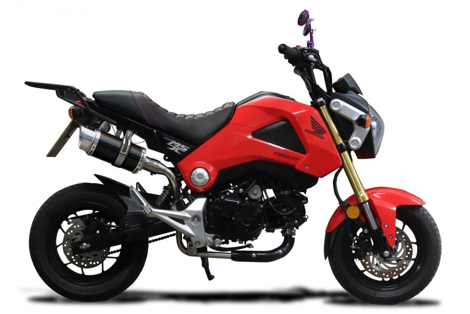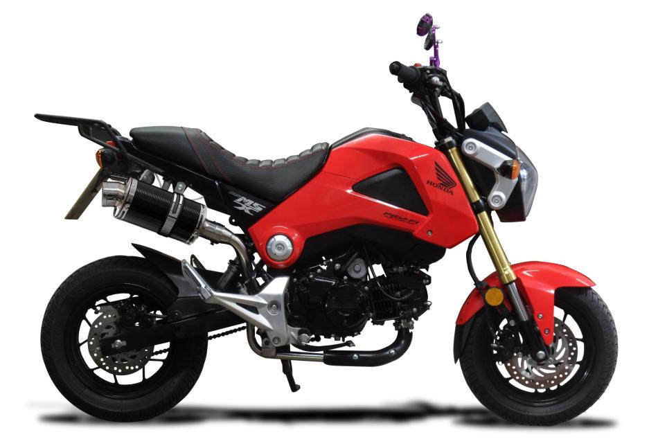 Kit d’échappement Slip-on pour Honda MSX125 Grom (2013-2015) avec XOVAL 260mm TITANIUM SILENCER CARBON FINISH END CAP INC:CLAMP & REMOVABLE BAFFLE Delkevic. Les silencieux Delkevic sont fabriqués à la main à partir de matériaux de la plus haute qualité pour améliorer les performances et l’esthétique de votre moto.