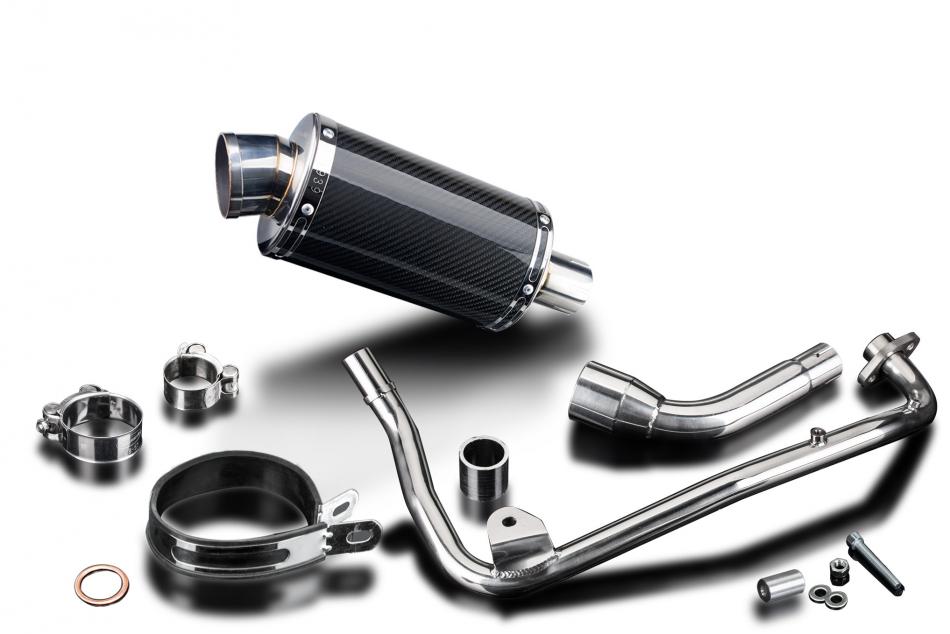 Systèmes d’échappement complets pour Honda MSX125 Grom (2013-2015) avec Silencieux Ovale En Fibre Carbone 225mm DS70. Systèmes Delkevic sont livrés avec des joints (si nécessaire) et des colliers de serrage. Nous fabriquons tous nos composants d’échappement dans notre propre usine, selon les procédures de contrôle qualité les plus strictes.