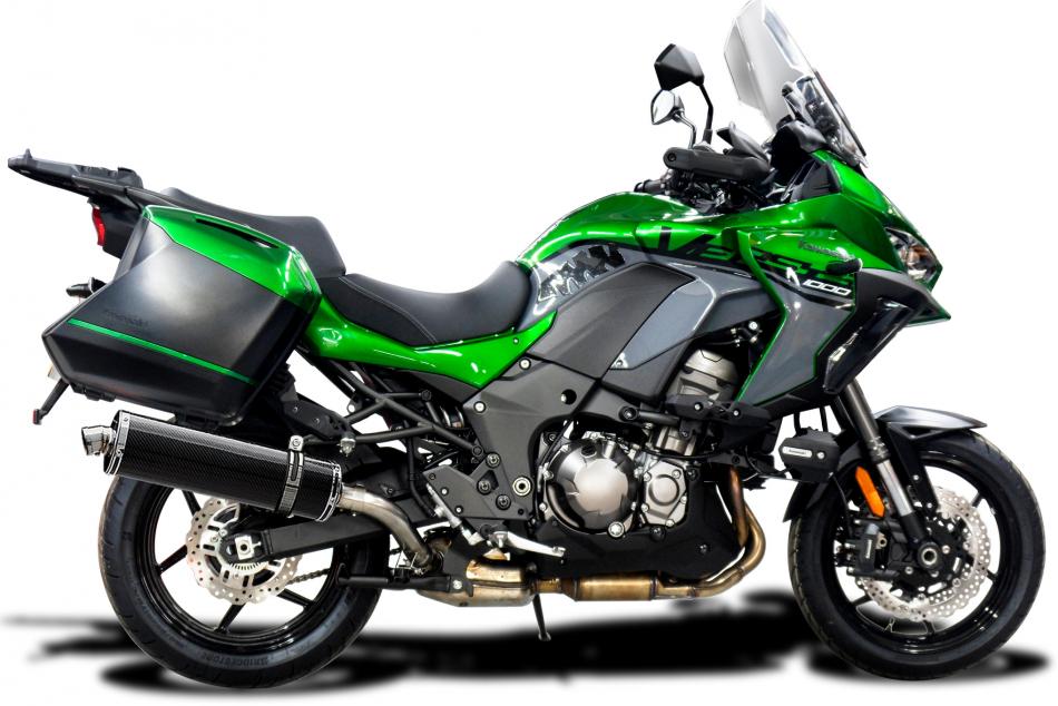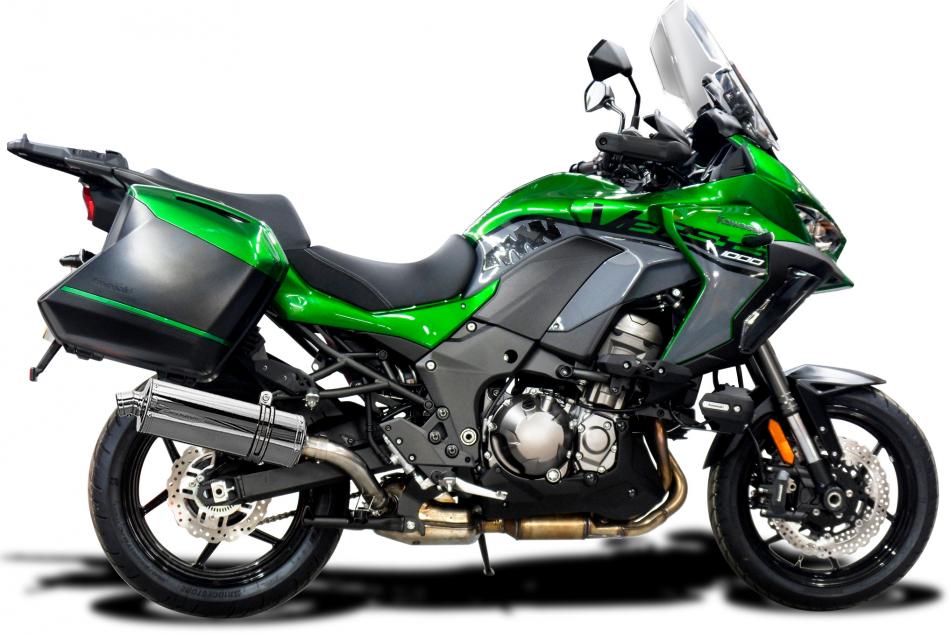 The Versys 1000 is the Grand Touring Offering from Kawasaki. 120PS and full Luggage available. This mile muncher will munch more miles with a Delkevic Exhaust taking it to the next level