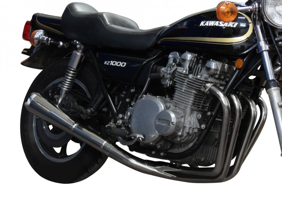 The successor to the iconic Z1 and KZ900 the KZ1000A boasted a DOHC 1015cc motor. Delkevic offer Stainless 4 into 1 products and a kit to enable the classic 4 into 4 900 system to be fitted.