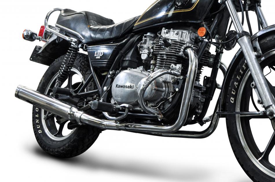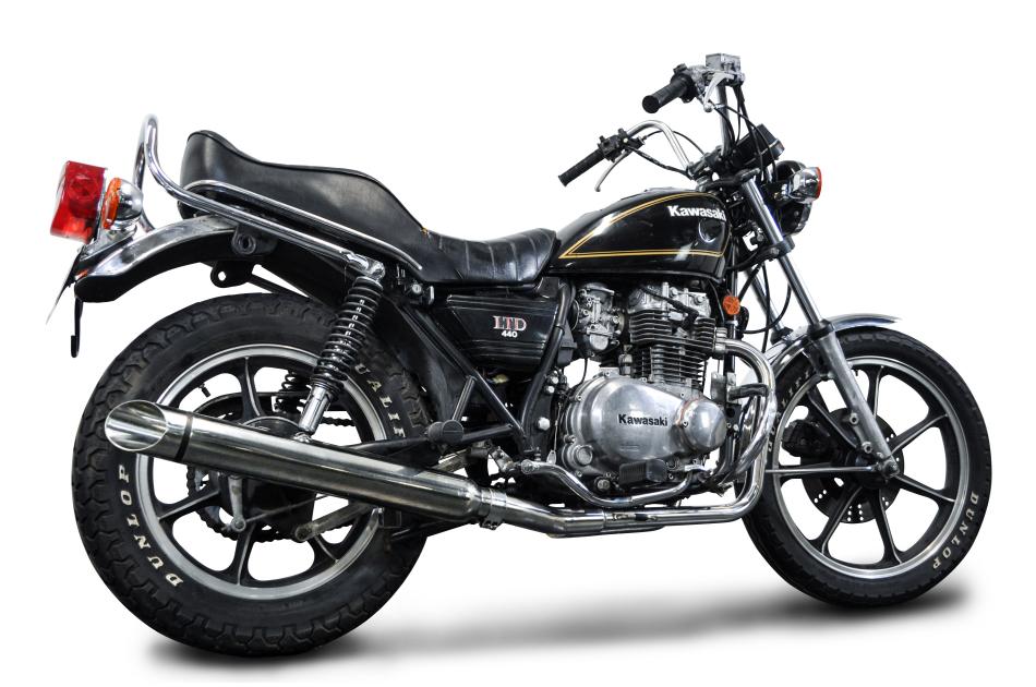 The Kawasaki Z440B is a street machine boasting six speed gearbox, front disc brake, twin exhaust system. A Delkevic exhaust will reduce weight and improve performance.