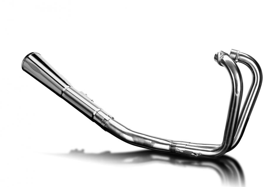 Doté de descentes en acier inoxydable et du silencieux droit classique Delkevic, ce système est fabriqué à la main avec des matériaux de première qualité et conçu pour s’adapter aux motos classiques d’antan. Doté d’un système de chicanes amovibles, cet échappement propulse votre moto classique au niveau supérieur.
