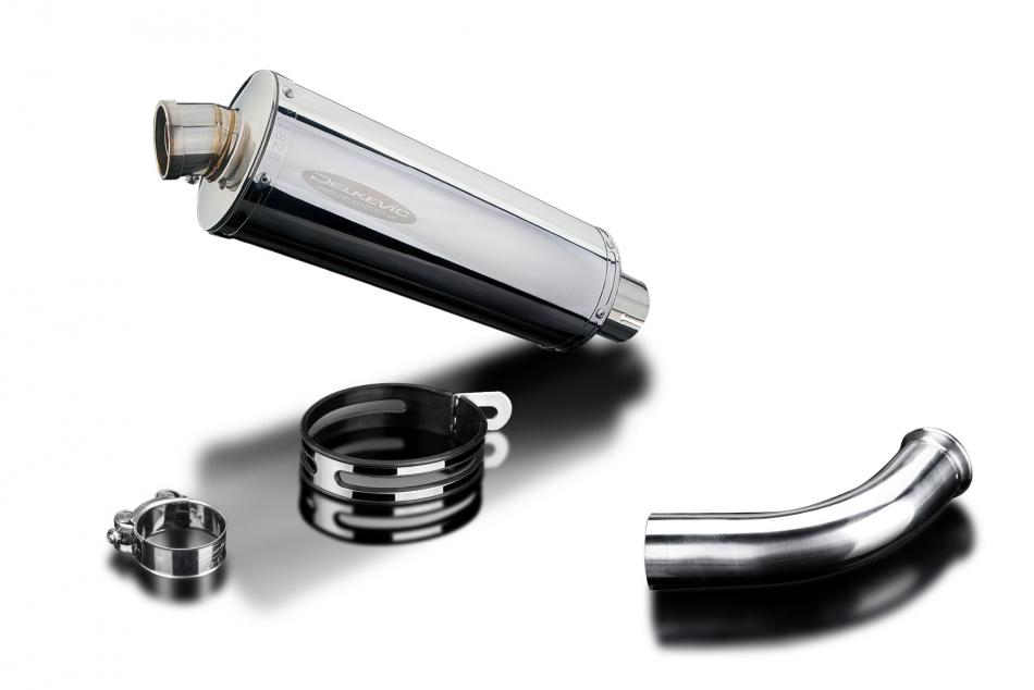 Kit d’échappement Slip-on pour KTM RC390 (2017-2020) avec Silencieux Ovale En Acier Inoxydable 350mm Stubby Delkevic. Les silencieux Delkevic sont fabriqués à la main à partir de matériaux de la plus haute qualité pour améliorer les performances et l’esthétique de votre moto.
