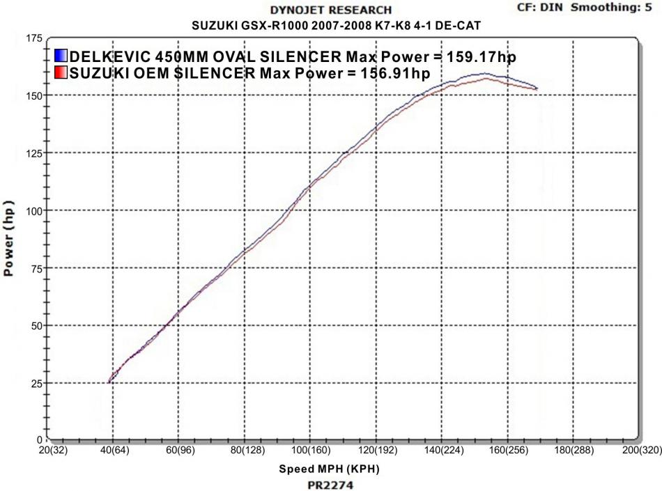 SUZUKI GSXR1000 2007-08 Echappement DECAT Silencieux 450mm Ovale Inox