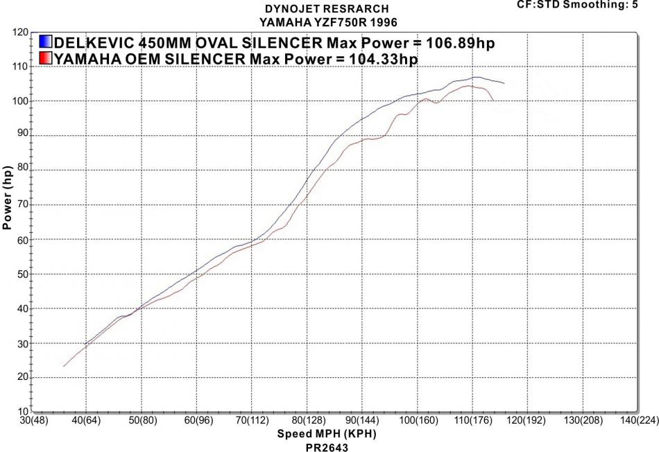 YAMAHA YZF750R 1994-1998 Echappement Silencieux 450mm Ovale Inox